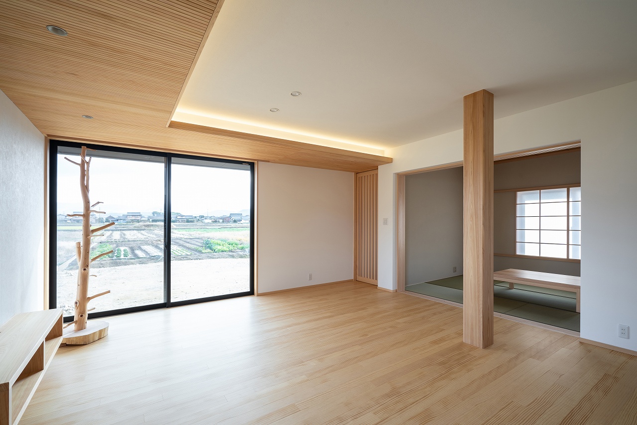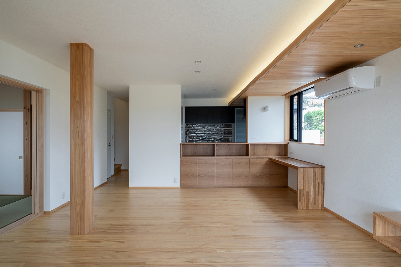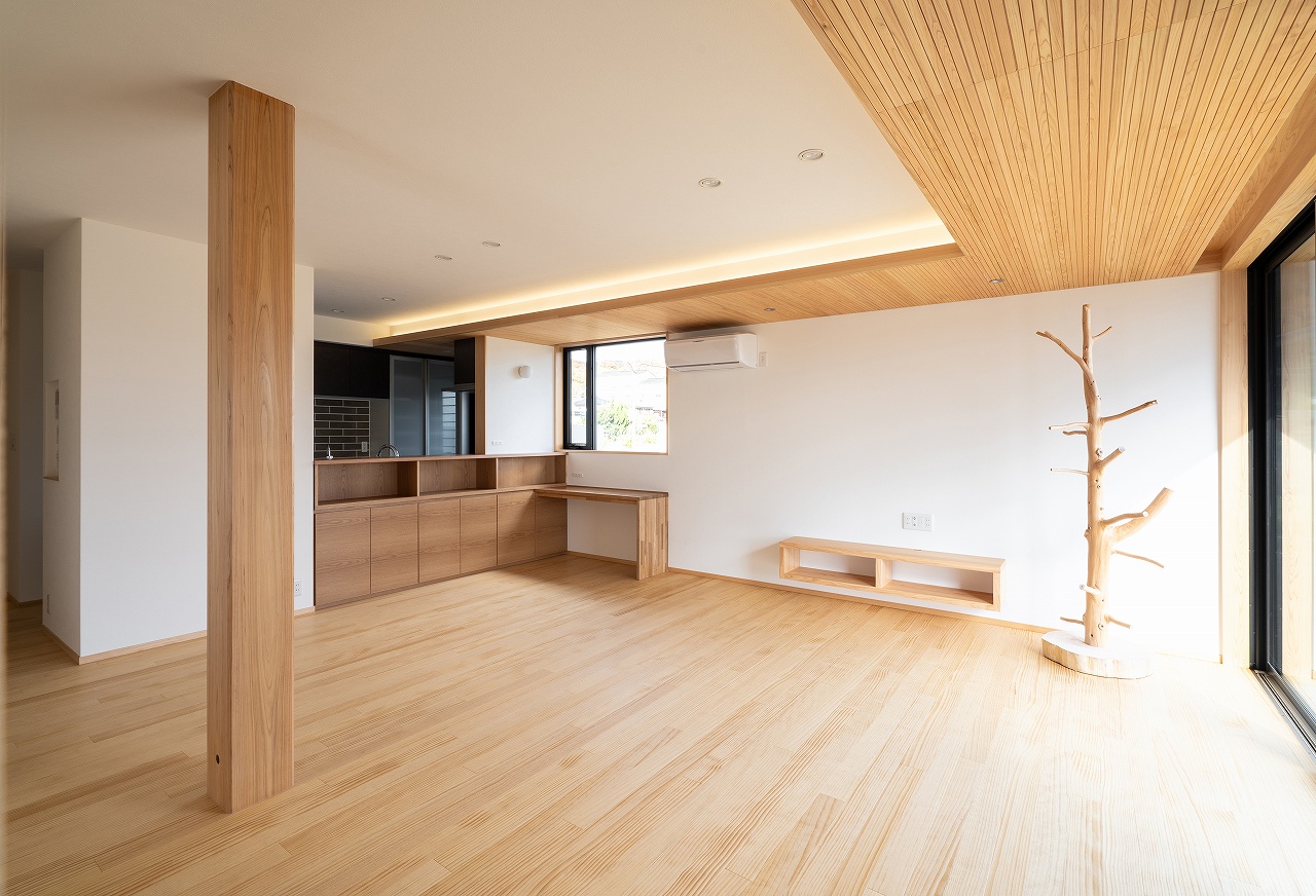 ひのきと暮らす、大黒柱のある家 自由設計 2階建て 40坪以上 和室 土間収納 寄棟 対面キッチン 書斎・テレワークスペース 洋瓦 無垢板フローリング 畳 県産桧の大黒柱 県産桧の小幅板風羽目板 県産桧の枝付柱 障子 物件概要 所在地香川県仲多度郡琴平町構造 木造(在来軸組工法)延床面積1階 75.01㎡(22.73坪) 2階 57.57㎡(17.45坪) 合計 132.58㎡(40.18坪) 香川県まんのう町でお施主様と一緒に伐採したひのきを、大黒柱として迎えた2階建ての木造住宅です。枝付きの柱やベンチ、テレビ台、机など、伐採した木を余すことなく活用。床には無垢材を使い、家全体にやさしい木の香りが広がります。外壁はサイディング仕上げ。広々とした洗面まわりと家事室も備え、日々の暮らしを快適に支えます。 その他の建築事例 瀬戸内海を一望する 自然と調和した平屋 まちの中に佇む凛とした平屋 四季折々の美しさが広がる上質な小さな平屋 一覧へ戻る