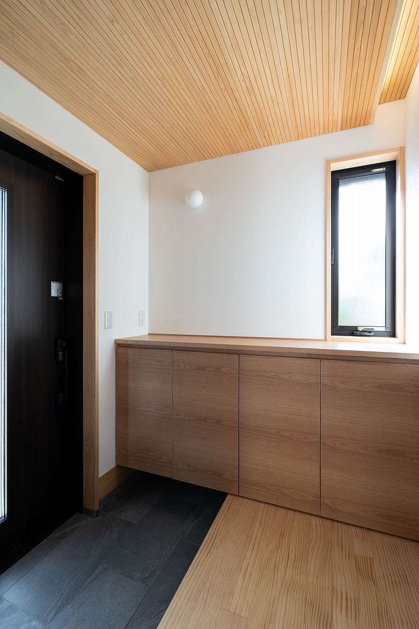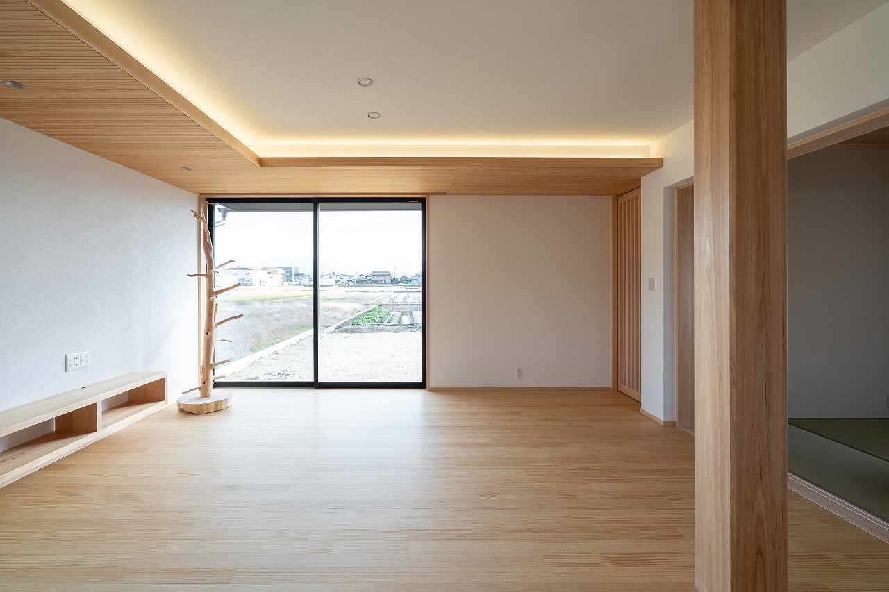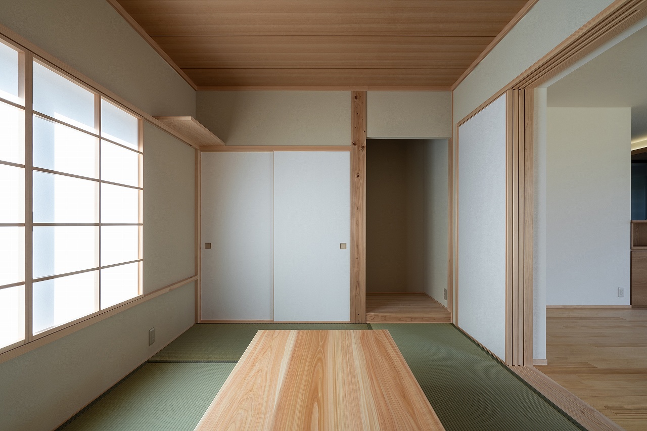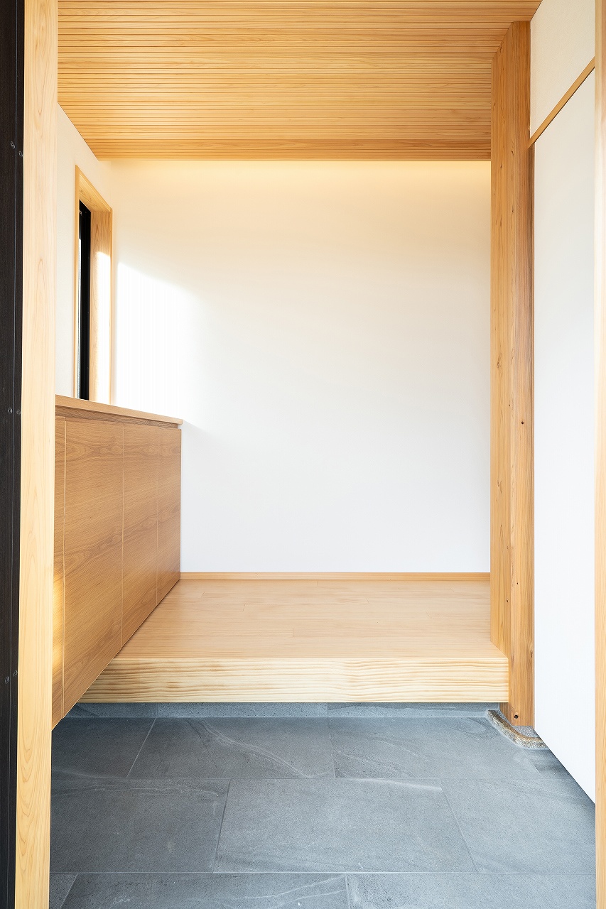 ひのきと暮らす、大黒柱のある家 自由設計 2階建て 40坪以上 和室 土間収納 寄棟 対面キッチン 書斎・テレワークスペース 洋瓦 無垢板フローリング 畳 県産桧の大黒柱 県産桧の小幅板風羽目板 県産桧の枝付柱 障子 物件概要 所在地香川県仲多度郡琴平町構造 木造(在来軸組工法)延床面積1階 75.01㎡(22.73坪) 2階 57.57㎡(17.45坪) 合計 132.58㎡(40.18坪) 香川県まんのう町でお施主様と一緒に伐採したひのきを、大黒柱として迎えた2階建ての木造住宅です。枝付きの柱やベンチ、テレビ台、机など、伐採した木を余すことなく活用。床には無垢材を使い、家全体にやさしい木の香りが広がります。外壁はサイディング仕上げ。広々とした洗面まわりと家事室も備え、日々の暮らしを快適に支えます。 その他の建築事例 瀬戸内海を一望する 自然と調和した平屋 まちの中に佇む凛とした平屋 四季折々の美しさが広がる上質な小さな平屋 一覧へ戻る